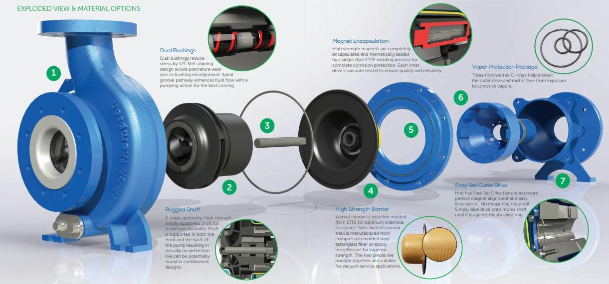 Bu pompaların en önemli avantajı; agresif ve tehlikeli kimyasalların sebep olduğu salmastra kaçaklarının önüne geçmesidir. Bu sayede tehlikeli kimyasalların ortama ve kişilere zarar vermesi önlenmektedir.